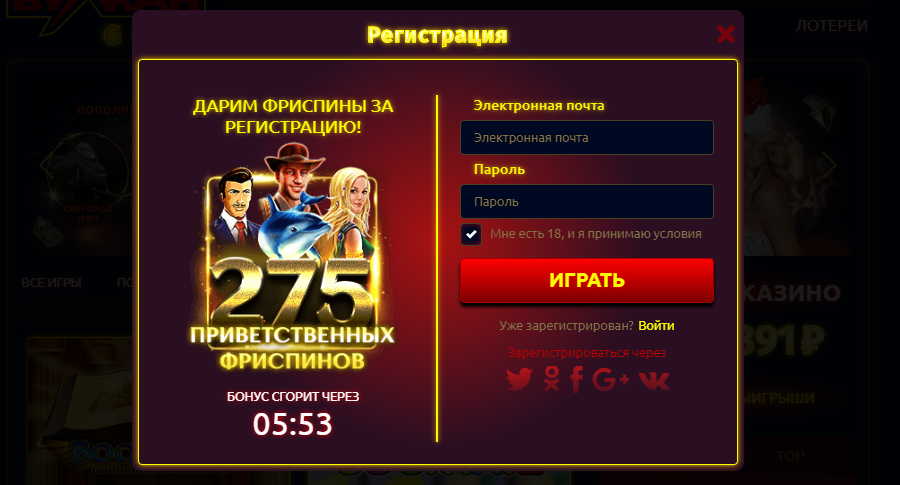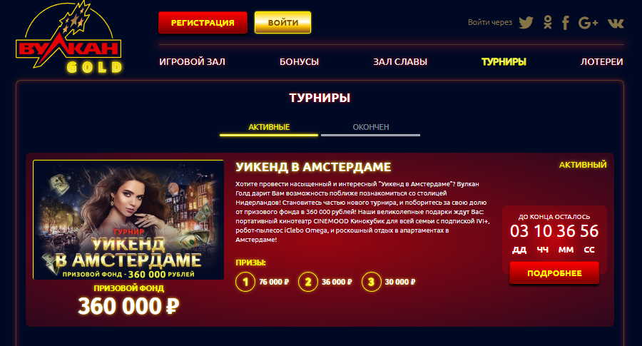 Пользователи виртуального игорного клуба Вулкан Голд высоко оценили простоту процесса создания личного аккаунта. При этом она максимально быстрая. От игрока требуется лишь нажать на одноименную клавишу на игровом экране, заполнить регистрационную форму, придумать логин и пароль для личного кабинета. Затем следует активировать созданную учетную запись, привязать к ней игровой валютный счет. После этого можно смело приступать к играм на деньги (но не забыть пополнить баланс хотя бы минимальным депозитом). Также есть возможность авторизоваться через социальные сети.
